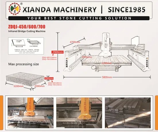 이 기계는 화강암, 대리석 및 석영을 포함한 재료로 기둥, 큰 아치형 슬라브 및 특수 석재 모양을 절단하도록 설계되었습니다.